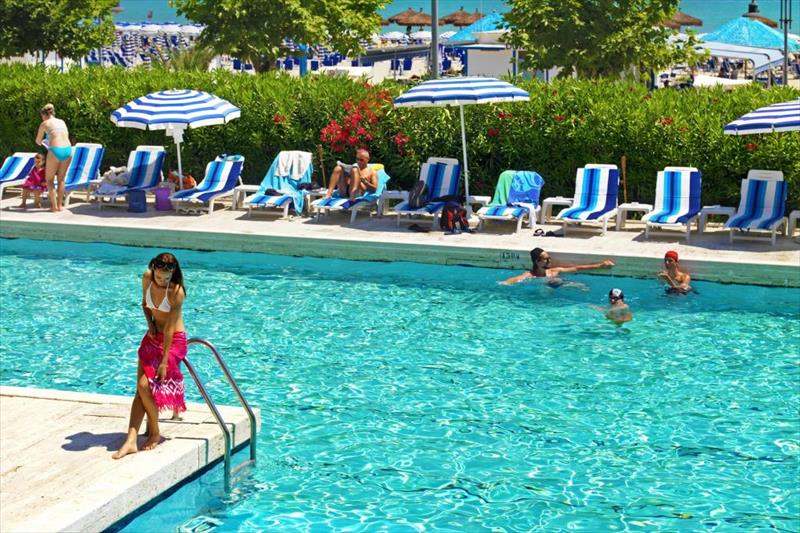 Charakterystyka: Hotel oferuje całodobową recepcję,obsługa bagażu,winda,restauracja a la carte (w jadalni znajduje się taras z widokiem na morze i basen),przechowalnia i wypożyczalnia rowerów,pokój telewizyjny,bar,bar przy basenie,Punkt internetowy (i dodatkowa bezpłatna sieć Wi-Fi),ogród,taras,Sale konferencyjne,parking (w zależności od dostępności), odkryty basen i kort tenisowy.Wszystkie pokoje wyposażone są w klimatyzację,telefon,Tv-Sat, wanna/WC i suszarka do włosów,mini-bar,bezpieczna.Pokoje z bocznym widokiem na morze i/lub z balkonem można zarezerwować na życzenie, w zależności od dostępności.