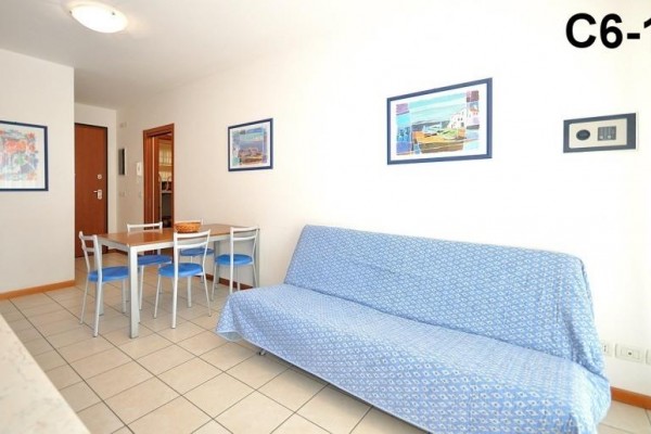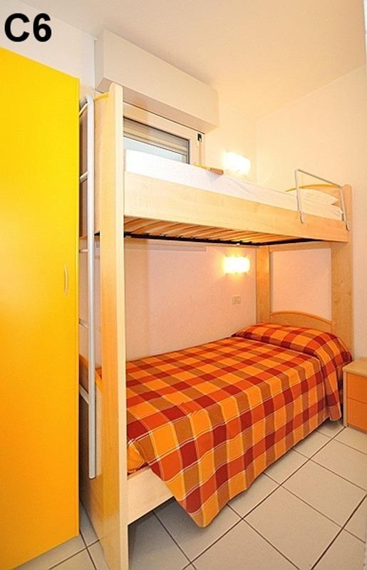 C6-1: (47 m2, maks. 6 osób) sypialnia z łóżkiem dwuosobowym, sypialnia z łóżkiem piętrowym, pokój dzienny z rozkładanym łóżkiem dwuosobowym oraz boksem kuchennym. Mniejsze apartamenty, blisko windy.