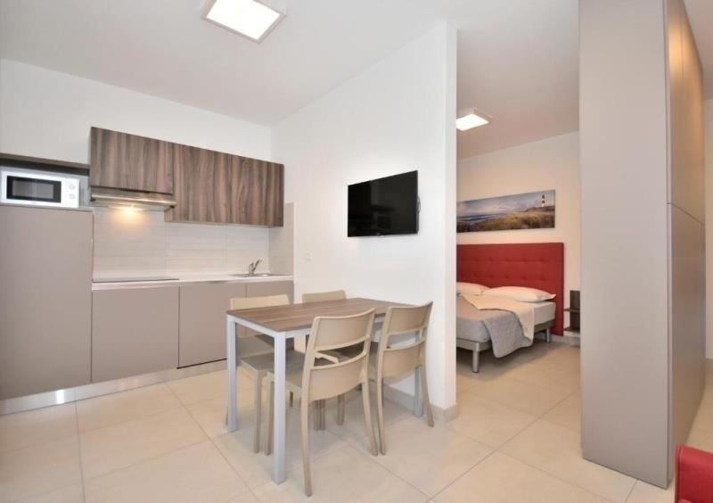 Zakwaterowanie: Apartamenty są nowocześnie urządzone, zawsze z wyposażonym aneksem kuchennym (płyta indukcyjna), zmywarką, kuchenką mikrofalową, prysznicem + toaletą, pralką, sejfem, Wi-Fi, TV/SAT, klimatyzacją, balkonem lub tarasem.