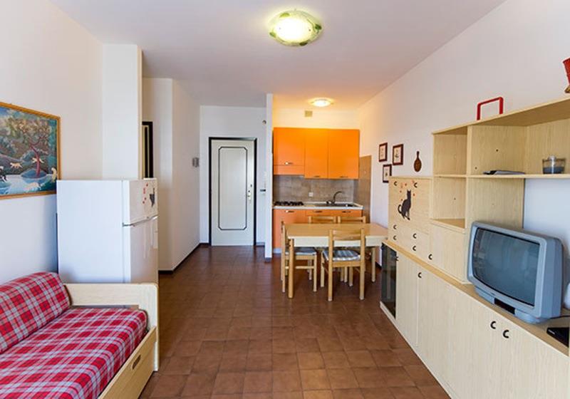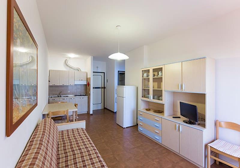 Zakwaterowanie: apartamenty są standardowo urządzone, zawsze z wyposażonym boksem kuchennym, prysznic+WC, balkon. Niektóre apartamenty mają TV, niektóre klimatyzację (na żądanie podczas rezerwacji).