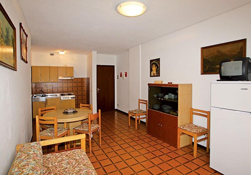 Zakwaterowanie: przestrzenne apartamenty są standardowo urządzone, zawsze z wyposażonym boksem kuchennym, prysznic+WC, balkon. Niektóre apartamenty mają TV lub klimatyzację (na żądanie podczas rezerwacji).