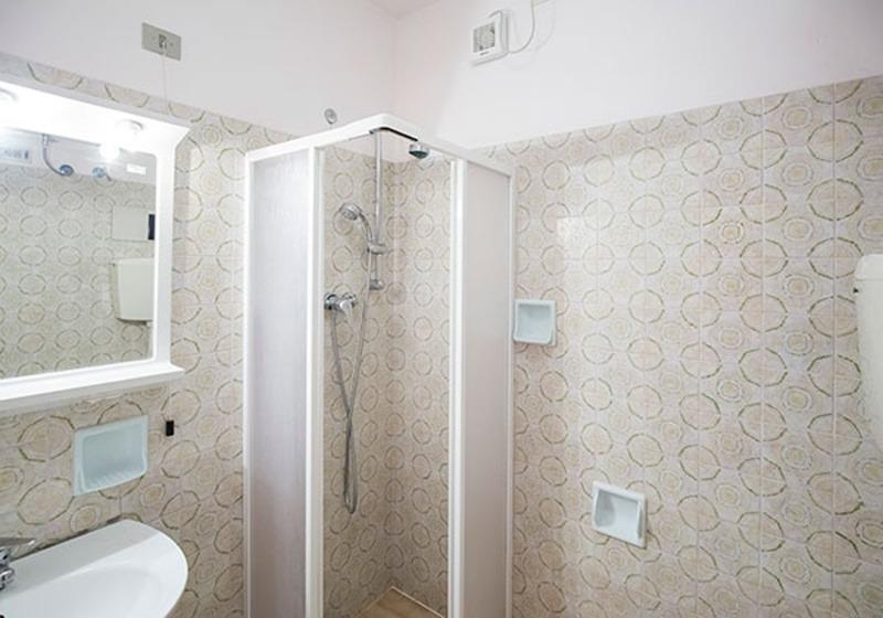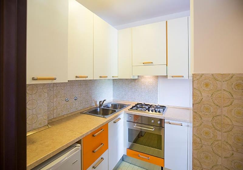 Zakwaterowanie: apartamenty są skromnie urządzone, zawsze z wyposażonym boksem kuchennym, prysznic+WC, TV, niektóre pokoje z klimatyzacją (na żądanie podczas rezerwacji), balkon. Z wyższych pięter oferuje się widok na morze.