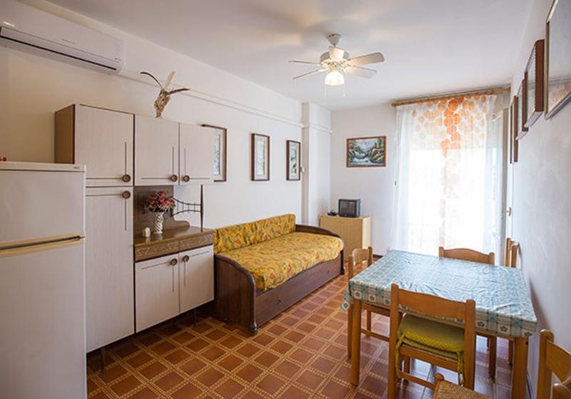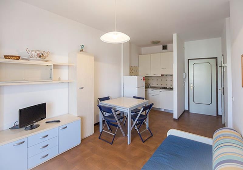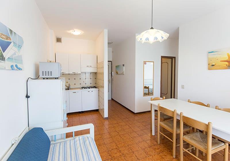 Zakwaterowanie: apartamenty są standardowo urządzone, zawsze z wyposażonym boksem kuchennym, prysznic+WC, TV, balkon. Niektóre apartamenty mają klimatyzację (na żądanie).