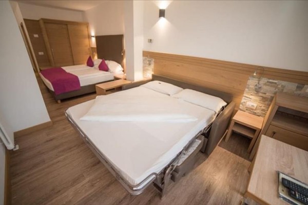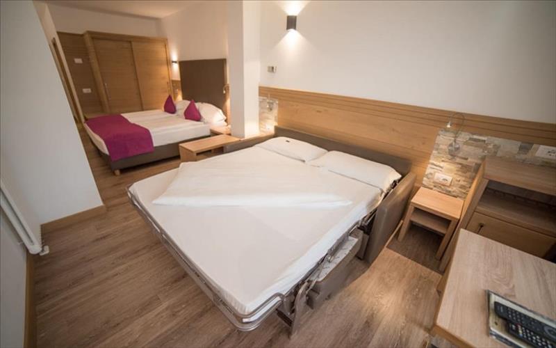 Pokoje typu Superior: Świeżo odnawiane,są wyposażone w telewizor,telefon,bezpieczna,łóżko polowe dla trzeciej osoby w pokoju trzyosobowym,rozkładana sofa dla trzeciej i czwartej osoby w pokoju czteroosobowym,Połączenie bezprzewodowe,suszarka do włosów,przestronny balkon z widokiem na góry.