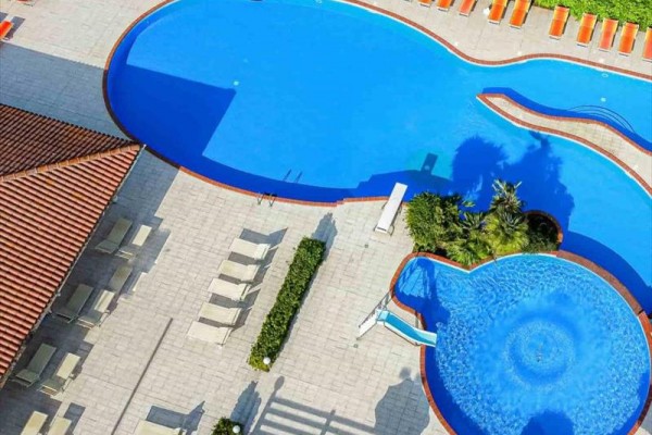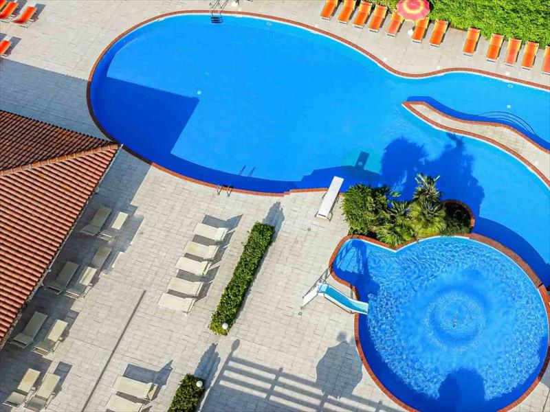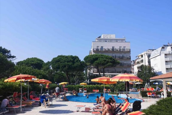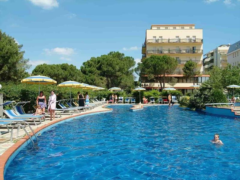 Charakterystyka: W obiekcie znajduje się całodobowa recepcja,bar,restauracja,klimatyzacja,Taras słoneczny,ogród,Wi-Fi,parking miejski,przechowalnia bagażu,pokój telewizyjny,winda,duży basen dla dorosłych i dzieci,wyposażony w zjeżdżalnię,trampolina i jacuzzi (w pobliskim Hotelu Adria),obsługa barowa przy basenie i duże solarium z leżakami i parasolami.Pokoje wyposażone są w sejf z telewizją satelitarną,telefon,niezależna klimatyzacja i ogrzewanie,odnowione łazienki z prysznicem lub wanną,suszarka do włosów,balkon.