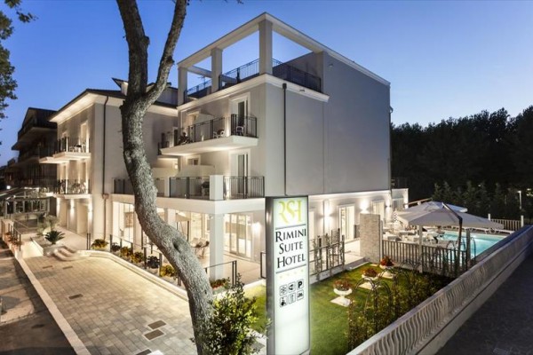 Lokalizacja: Destination: Rivabella - Rimini Kategoria hotelu: 4 gwiazdki Lokalizacja: Hotel Rimini Suite znajduje się w Rivabella w Rimini, 150 metrów od plaży i bardzo blisko wielu sklepów, barów i restauracji. Udogodnienia hotelowe: Hotel posiada łącznie 31 pokoi, recepcję, bar, salę śniadaniową, windę, basen zewnętrzny. Wi-Fi jest dostępne w całym hotelu bezpłatnie. Udogodnienia w pokojach: Pokoje posiadają prywatne łazienki, balkon, klimatyzację, sejf, kabinę prysznicową, suszarkę do włosów, telewizję satelitarną, telefon, Wi-Fi. Kołyska na życzenie. Pokoje jednoosobowe nie są dostępne. Pokoje wieloosobowe, jeśli są dostępne, mogą być z łóżkiem piętrowym Posiłki: Śniadanie: - Bufet śniadaniowy Zameldowanie: od 14:00 Wymeldowanie: do 10:00 Parking: Płatny parking na miejscu, niegwarantowany (w zależności od dostępności na miejscu). Zwierzęta: Małe zwierzęta są dozwolone za opłatą (płatną na miejscu) zgodnie z regulaminem hotelu Podatek turystyczny: nie jest wliczony w cenę. Musi zostać opłacony na miejscu przez klientów w momencie przyjazdu.