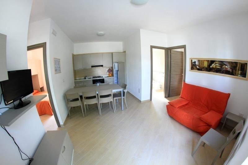 C4/6 SUPERIOR PLUS: (60 m2, maks. 6 osób, parter) nowsze apartamenty, dwie sypialnie w każdej łóżko dwuosobowe, pokój dzienny z rozkładanym łóżkiem jednoosobowym i boksem kuchennym, prysznic+WC, TV, klimatyzacja, taras z pergolą i meblami ogrodowmymi. Dostawka dla 5. i 6. osoby (na żądanie podczas rezerwacji, za opłatą).