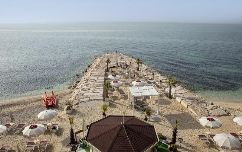 Plaża: piaszczysta z drobnymi kamyczkami z łagodnym wejściem do morza, piaszczyste i kamieniste dno, serwis plażowy (1 parasolka + 2 fotele/ apartament) objęty w cenie karty klubowej. Apartamenty SUPERIOR mają serwis plażowy w 1. rzędzie.