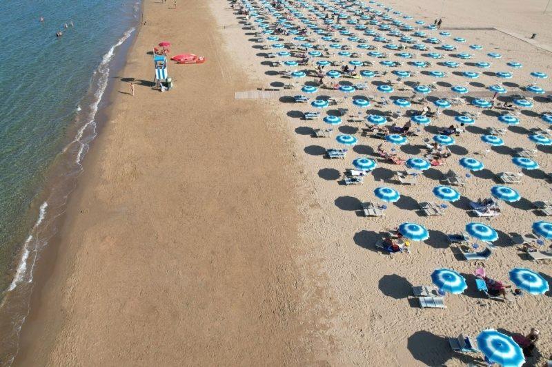 Plaża: piaszczysta, serwis plażowy od 4. rzędu (1 parasolka + 2 fotele/ apartament) w terminie do 27/6 i po 29/8 wliczone w cenę, 27/6-29/8 można kupić na miejscu.