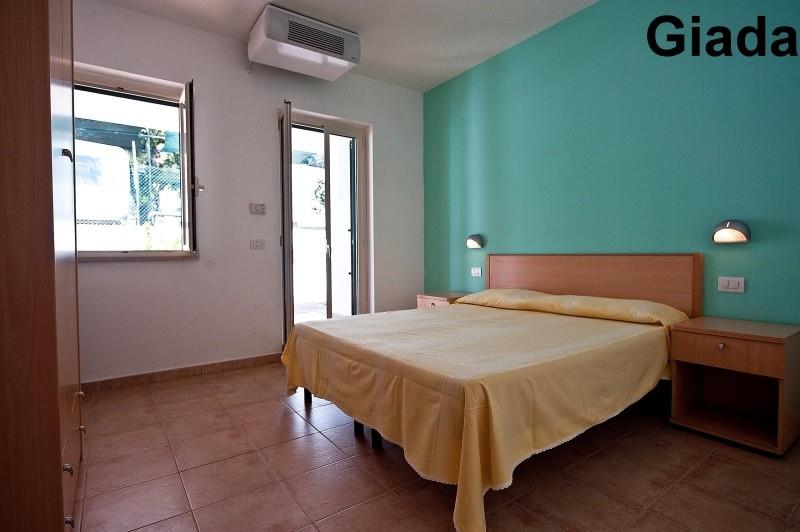 C5 GIADA: (50 m2, maks. 5 osób) dwie sypialnie w każdej łóżko dwuosobowe, pokój dzienny z rozkładanym łóżkiem i boksem kuchennym, weranda.