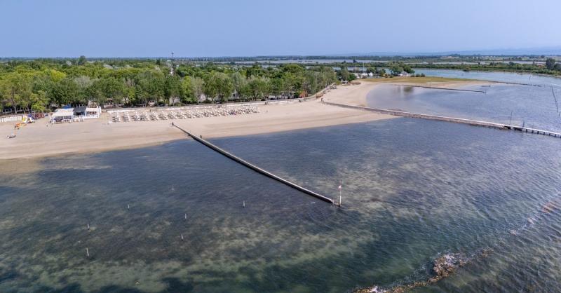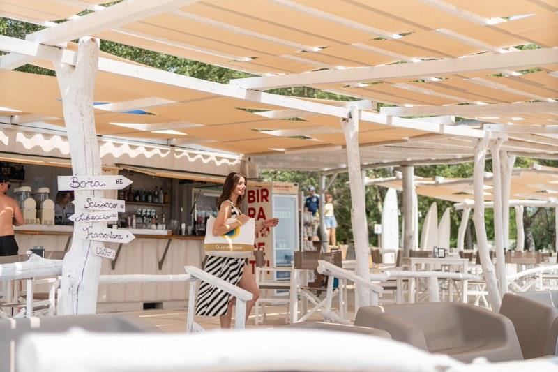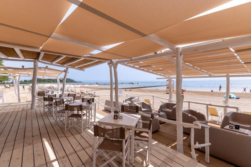 Plaża: Piaszczysta. Plaża położona jest w lagunie z bardzo łagodnym wejściem do morza. Na miejscu można wykupić serwis plażowy (ok. 20 €/dzień), można również rozstawić własne parasole.