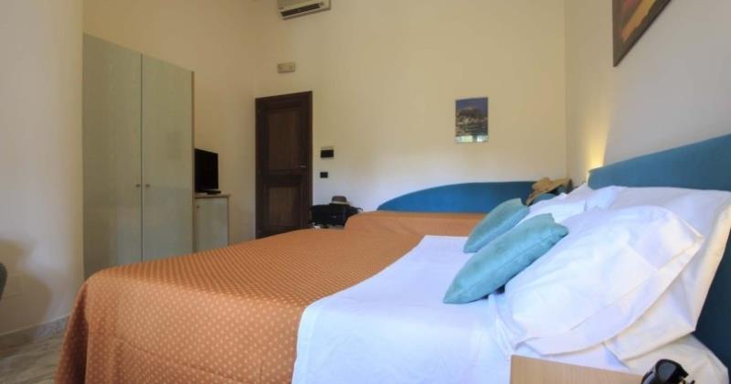 pokoje dwuosobowe z możliwością dwóch dostawek (25 m2) prysznic+WC, suszarka do włosów, TV/SAT, sejf, klimatyzacja, minibarek. Bez balkonu.
