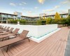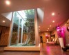 - wisząca wanna z hydromasażem, który wydaje się wyłaniać z wody i do którego można dostać się małym mostkiem z podłogi nad basenem, wyposażone w urocze salony.