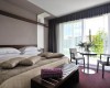 Pokój Komfort: Pokoje znajdują się na pierwszym i drugim piętrze budynku. Pokoje typu Comfort zlokalizowane są wzdłuż zewnętrznego obwodu i oferują widok na okoliczne tereny zamieszkałe.. 28/32m2: elegancki, komfortowy pokój z ciepłym, otulające kolory, które przywodzą na myśl odcienie ziemi i natury. Meble o czystych i minimalistycznych liniach. Realizacja systemu ogrzewania i chłodzenia zgodnie z zasadą eko-klimatyzacji. Certyfikowana izolacja akustyczna.telewizor LCD, kanały satelitarne, płatna telewizja,bezpieczna, klimatyzacja w lecie,mini-bar, taca z amerykańskim zestawem do kawy i herbaty. Łazienka wyłożona beżową porcelanową kamionką, ręczniki kąpielowe,kapcie,szlafrok, lusterko do makijażu, duży prysznic lub wanna,zestaw grzecznościowy. W zależności od dostępności, możliwość dodania trzeciego i czwartego łóżka za pomocą rozkładanej sofy.