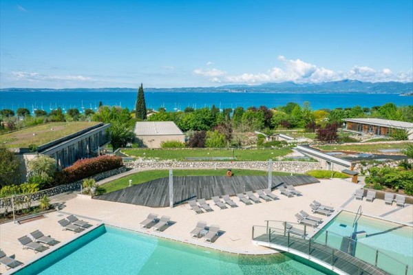 CHARAKTERYSTYKA: Parc Hotel Germano Suites, położony na zboczu, zaledwie kilka metrów od brzegu jeziora Garda i około 10 minut spacerem od centrum Bardolino, został zaprojektowany z uwzględnieniem rozwiązań architektonicznych szanujących charakter tego miejsca. W rezultacie powstała struktura, w której budynki idealnie komponują się z zielenią i zadrzewionymi terenami, tworząc nowoczesny, a zarazem przyjazny kompleks hotelowy. Hotel oferuje apartamenty i apartamenty urządzone z wyrafinowaniem i nowoczesnym smakiem, zanurzone w parku śródziemnomorskiej roślinności. Relaks w tym miejscu – z basenem i stawem kąpielowym, a także kolejnym stawem, w którym można łowić karpie – potęguje wyjątkowa prywatność i spokój prywatnych basenów, dostępnych dla gości niektórych apartamentów. W budynku głównym znajdują się wszystkie niezbędne udogodnienia: recepcja, bar, restauracje oraz dobrze wyposażone centrum odnowy biologicznej z saunami i krytym basenem. Przeżyj świetne wakacje w letnisku Bardolino.