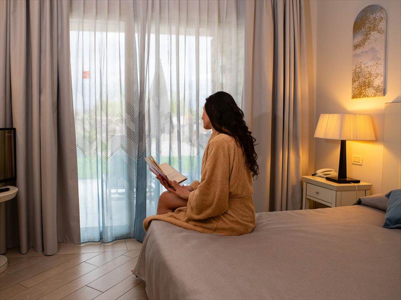 Wyposażenie i usługi: - Łóżeczko niedostępne - W Hali płatna rezerwacja wycieczek, wymiana walut, usługi pocztowe - Cocktail Bar „Panorama”, Snack Bar przy basenie (lunch ok. 12:30-14:00, codziennie od marca do października) - restauracja a’la carte „Bardolino” (od listopada jeden dzień w tygodniu nieczynna); - Basen zewnętrzny (ok. 9:00-19:00; 30x8m - 1,40m) z grami wodnymi, leżakami i parasolami dostępnymi bezpłatnie do wyczerpania zapasów; - Naturalny basen „Il Laghetto” (ok. 2,00 m, wstęp dzieci niedozwolony) - Karp Park i Staw: możliwość wędkowania sportowego (z zasadą złap i wypuść) - Płatne Centrum Wellness z: Basenem krytym (ok. 10:00-19:30; 11x5m - 1,40m, obowiązkowe czepki pływackie) z bezpłatnym hydromasażem i sauną fińską (ok. 17:00-19:00) - (przewidywane są krótkie okresy zamknięcia według uznania kierownictwa), wyposażoną siłownią (ok. 9:00-19:00), Centrum urody i wellness* „Slim