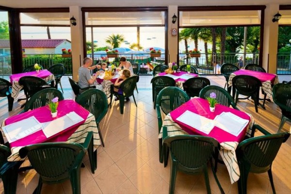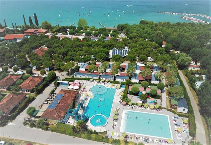 Oferta noclegowa obejmuje ponad 400 panoramicznych miejsc dla namiotów, kamperów i przyczep kempingowych (z dostępem do prądu, wody i kanalizacji), a także 50 przytulnych bungalowów i domków mobilnych, wyposażonych w klimatyzację, prywatne łazienki, w pełni wyposażone kuchnie i zadaszone przestrzenie zewnętrzne. Usługi są na najwyższym poziomie: podgrzewany basen olimpijski z jacuzzi, brodzik dla dzieci, korty tenisowe, boiska do piłki nożnej 5-a-side i siatkówki plażowej, restauracja-pizzeria oferująca lokalne specjały kuchni weneckiej i śródziemnomorskiej, minimarket, bar, lodziarnia i pralnia samoobsługowa. W szczycie sezonu (od kwietnia do października) włoscy animatorzy organizują minikluby dla najmłodszych, lekcje pływania, wieczorki taneczne i wycieczki rowerowe.