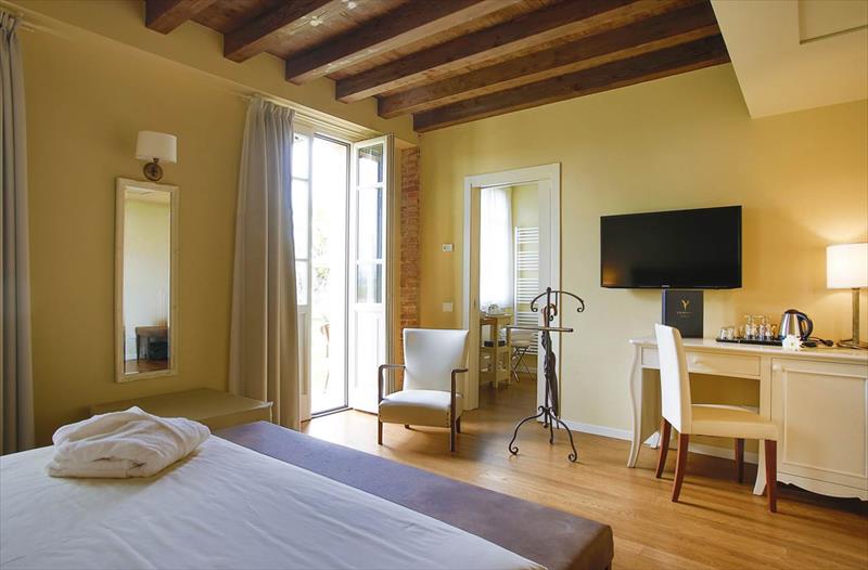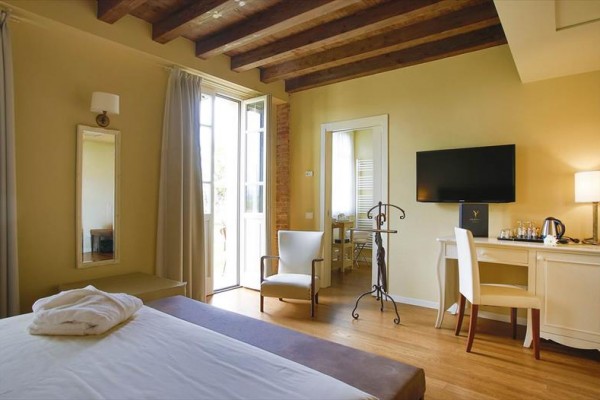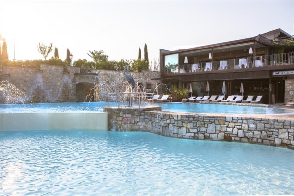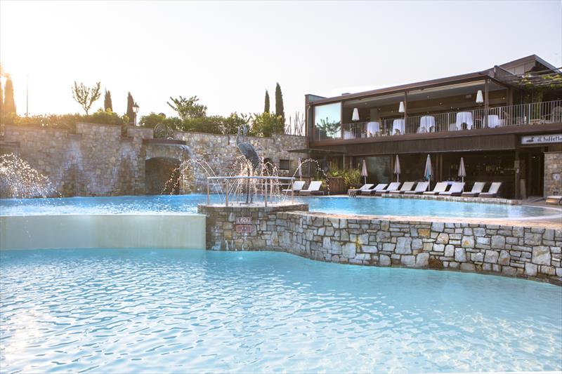 Wyposażenie i usługi: - Strefa wellness ze spa, sauną, łaźnią turecką, strefą relaksu z możliwością skorzystania z zabiegów kosmetycznych i pakietów wellness. Wstęp dla osób poniżej 16. roku życia wzbroniony. - 2 zewnętrzne baseny z wodą słoną (bez chloru) i strefą jacuzzi czynne w okresie od 04.01 do 10.06. - Osoby poniżej 18 roku życia nie mogą korzystać z basenu bez krawędzi - Pole golfowe w pobliżu (około 8 km) - Płatna wypożyczalnia rowerów - Siatkówka plażowa - Miesiąc miodowy: masaż indywidualny (po 30 minut każdy) w cenie - Autobus wahadłowy do/z centrum Peschiera del Garda (3 razy dziennie) - 2 restauracje: „Ardea Purpurea” w willi z ogrodem zimowym z widokiem na staw oraz „Tuffetto Grill and Bar” w sezonie letnim - Śniadania serwowane do godziny 10:30 - Parking niestrzeżony, garaż niedostępny - Zwierzęta domowe są dozwolone tylko w kategorii deluxe, za opłatą. Zakaz wstępu do basenów i centrum odnowy biologicznej. - Hotel z 2 pokojami przystosowanymi do potrzeb osób niepełnosprawnych (w willi), na życzenie. - Akceptowane karty kredytowe: Visa, Carta Si, Mastercard, Mancomat