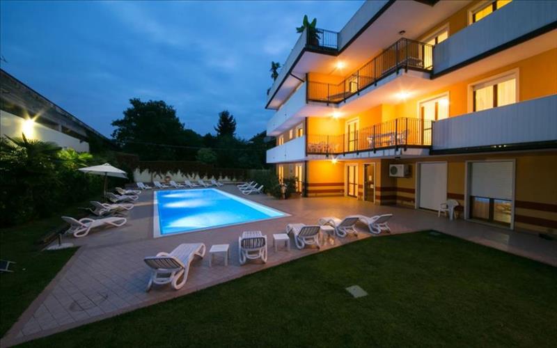 W obiekcie **** o statusie sklasyfikowanym znajduje się recepcja, odkryty basen z parasolami i leżakami (w zależności od dostępności),ogród, W cenę wliczone jest łącze Wi-Fi, prywatny parking zadaszony (w cenie 1 samochód),winda. Podstawowe dwupokojowe mieszkanie: Podstawowe dwupokojowe mieszkanie (ok.. (ok. 50m2). Duża kuchnia z salonem w pełni umeblowana, wyposażona w zastawę stołową, 4 elektryczne palniki do gotowania,lodówka z zamrażarką,kuchenka mikrofalowa,zmywarka, pralka (jeśli dostępna). Mają również telewizję cyfrową/satelitarną,klimatyzacja, ogrzewanie na zimę,balkon. Wyposażony w sypialnię dwuosobową z pościelą, narzuta i ręczniki, 1 szafa, 1 łazienka z prysznicem, toaleta i bidet. Każdy klient ma do dyspozycji mały sejf, w którym może przechowywać swoje rzeczy osobiste. Wszystko umeblowane ze smakiem. Dostępny bezpłatny internet Wi-Fi, 1 zadaszone miejsce parkingowe i zestaw powitalny.