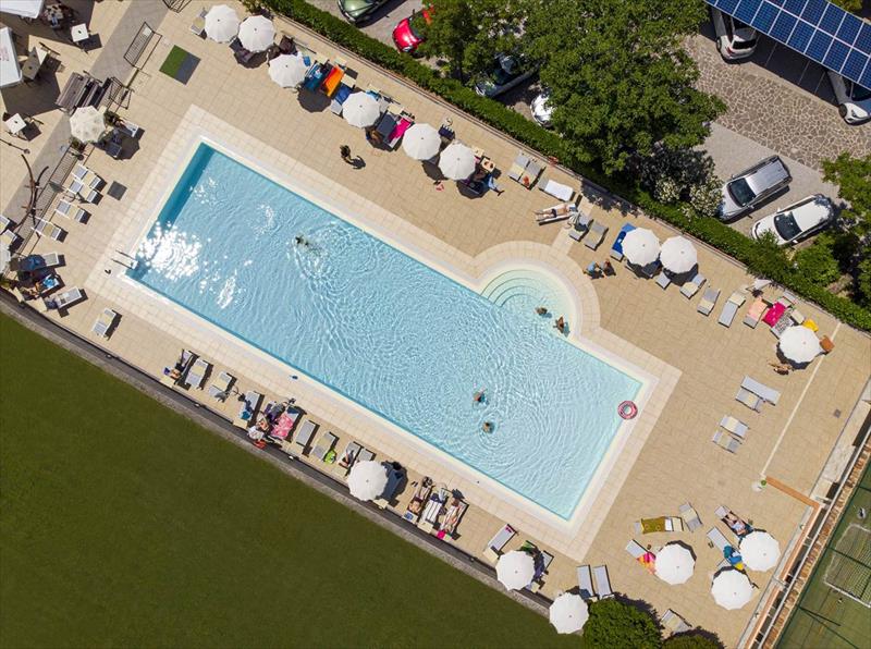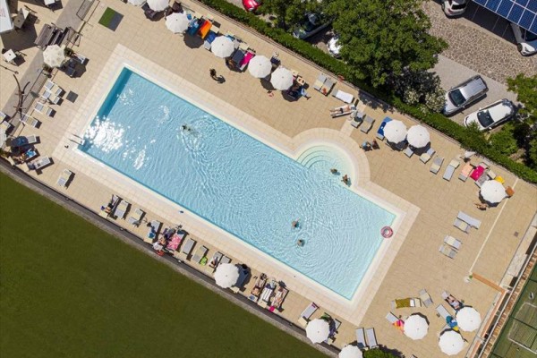 Wyposażenie i usługi: - Dostępność łóżeczka dziecięcego należy wskazać w momencie rezerwacji - Strefa wellness (wybudowana w 2018 roku) z podgrzewanym basenem i jacuzzi, sauną, łaźnią turecką i prysznicami wrażeń, czynna do połowy maja i od połowy września. Wstęp po wcześniejszej rezerwacji i za opłatą. - Szlafrok w recepcji, za opłatą - Basen zewnętrzny 8x25, głębokość od 0,40 m do 1,40 m czynny od kwietnia do października - Parking niestrzeżony (zamykany w nocy) - Bezpłatne Wi-Fi na terenie całego hotelu - Zajęcia sportowe: tenis (z lekcjami indywidualnymi lub grupowymi, także w języku niemieckim po wcześniejszej rezerwacji), ping-pong, siatkówka, fitness, boisko do piłki nożnej pięcioosobowej ze sztuczną nawierzchnią - Hotel dostępny dla osób niepełnosprawnych na życzenie - Na życzenie (za opłatą): dania bezglutenowe, bez laktozy i wegetariańskie. Powiadomienie przy rezerwacji. - Akceptowane karty kredytowe: Visa, Carta Si, Mastercard, Bancomat/Maestro