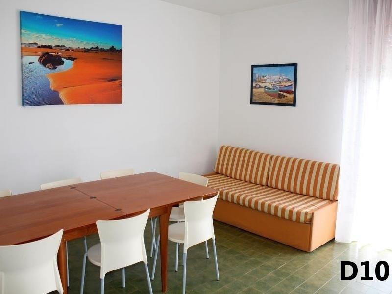 D10: (maks. 10 osób) dwie sypialnie w każdej trzy łóżka, sypialnia z dwoma łóżkami , przestrzenny pokój dzienny z rozkładanym łóżkiem dwuosobowym i boksem kuchennym, 2x prysznic+WC, przestrzenny balkon z widokiem na morze.