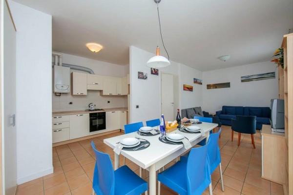 WIOSKA-APARTAMENT TRZYPOKOJOWY 6 OSÓB Całkowicie odnowiony apartament z 2 sypialniami, jedną z łóżkiem podwójnym i jedną z dwoma pojedynczymi łóżkami, nowoczesnym salonem z rozkładaną sofą dwuosobową oraz nowoczesną kuchnią z salonem dla 6 osób. W pełni wyposażona łazienka z prysznicem, toaletą i bidetem. Apartament posiada prywatny balkon lub ogródek, co zapewnia maksymalny spokój i relaks.