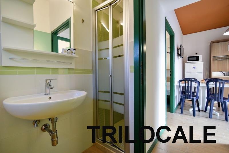 | apartmán Trilocale Standard: (maks. 4 osoby, 50 m2) sypialnia z łóżkiem małżeńskim, sypialnia z dwoma pojedynczymi łóżkami, pokój dzienny z aneksem kuchennym, łazienka z prysznicem+WC+suszarka do włosów, klimatyzacja. Weranda z miejscem do siedzenia. | ||||||||||||||||||||||||||||||||||||||||||||||||||||||