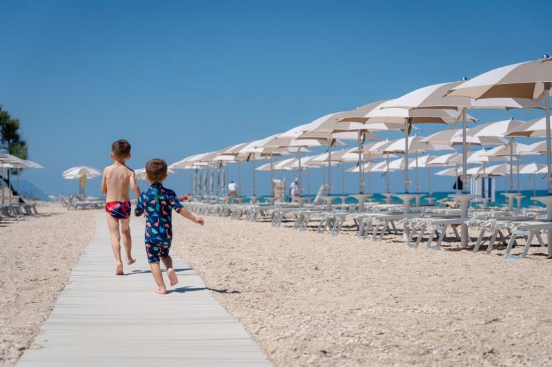 Plaża: piaszczysta, łagodne zejście do morza, serwis plażowy można dokupić na miejscu, część plaży wolna.