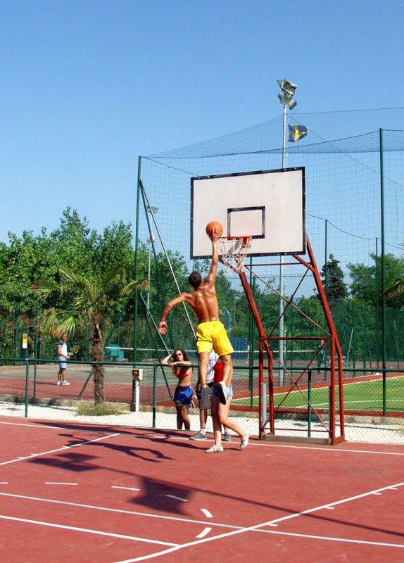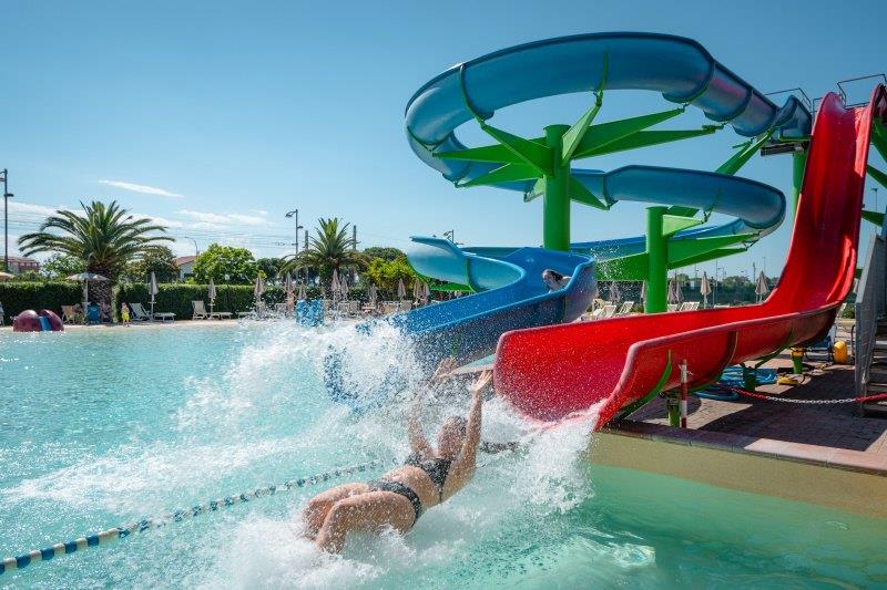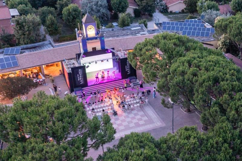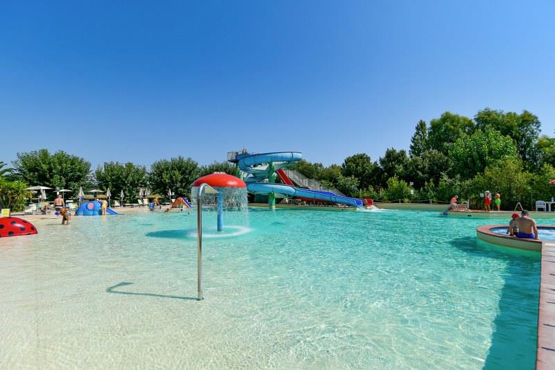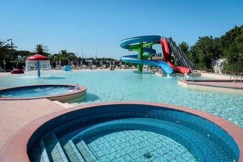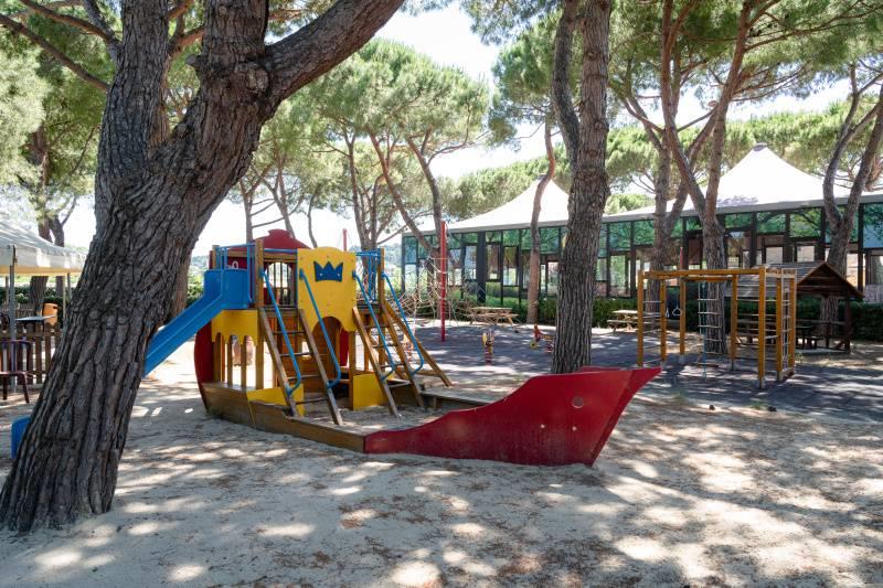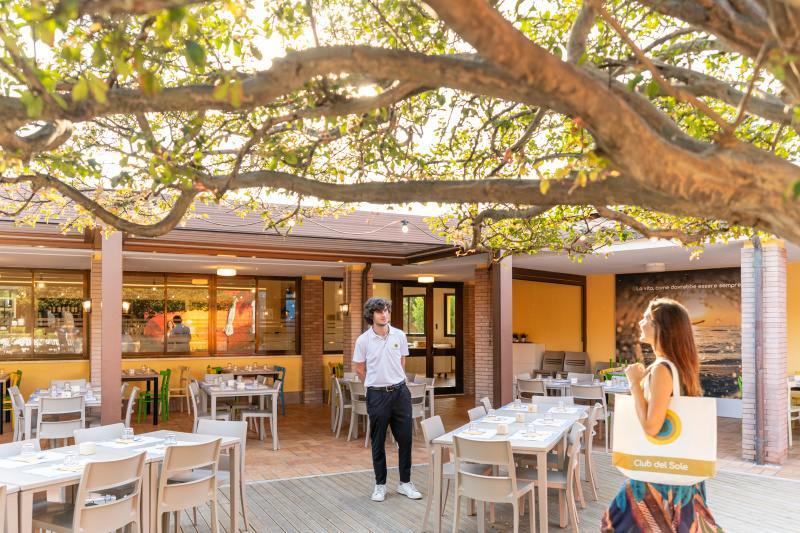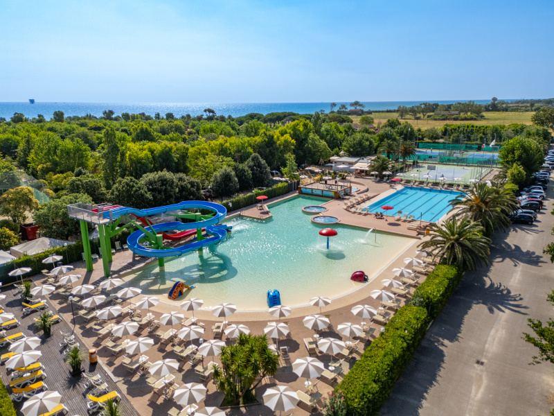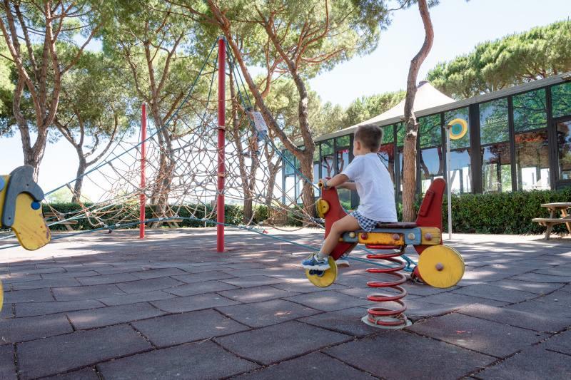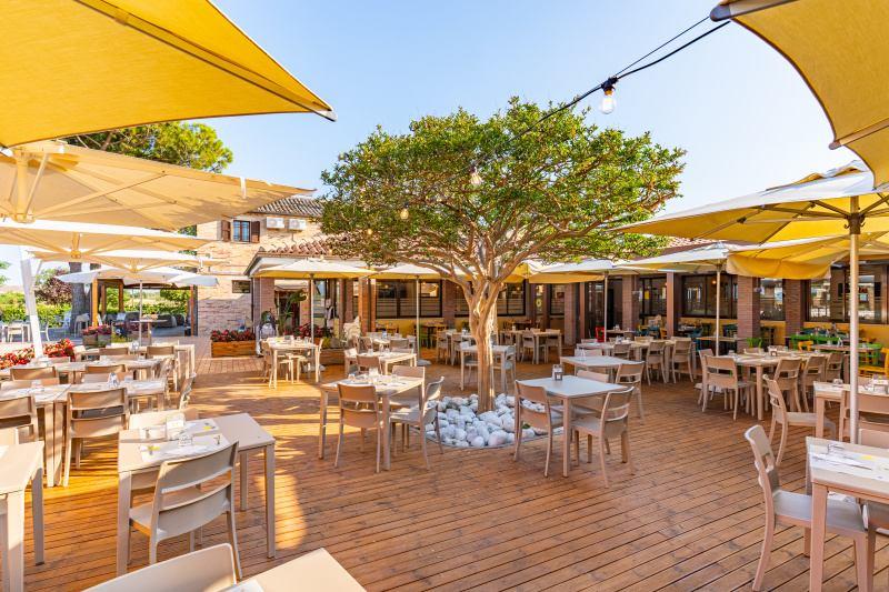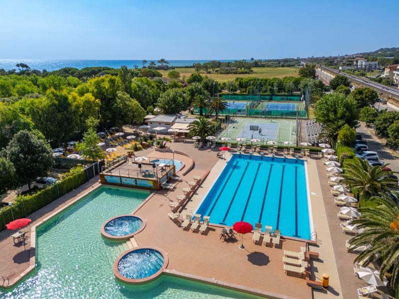 Wyposażenie i usługi: recepcja, restauracja-pizzeria, bar, sklep, pralnia (za opłatą), basen dla dorosłych i dla dzieci (czepek obowiązkowy), boisko dla dzieci, spinning, siatkówka plażowa, aquagimnastyka, aerobik, siłownia, tenis stołowy, programy animacyjne i miniclub (około 1/6-5/9), Wi-Fi, wypożyczalnia rowerów (za opłatą).