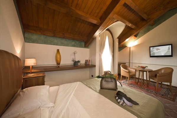 PODWÓJNE JAKO JEDNORAZOWEGO UŻYTKU SUPERIOR Pokój o powierzchni około 25 metrów kwadratowych, do pojedynczego wykorzystania, z eleganckim i wyrafinowanym umeblowaniem, gwarantującym komfortowy pobyt. Większość pokoi znajduje się na poddaszu i posiada niewielki balkon.