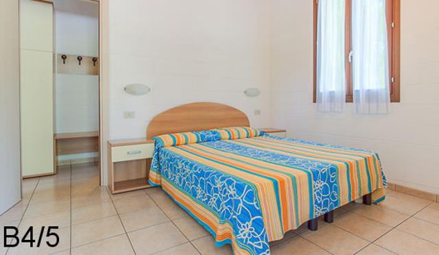 B4/5: (36 m2, maks. 5 osób) sypialnia z łóżkiem dwuosobowym, pokój dzienny z rozkładanym łóżkiem dwuosobowym oraz boksem kuchennym. Możliwa dostawka dla 5. osoby (na żądanie podczas rezerwacji, za dopłatą).