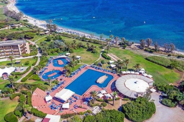 Charakterystyka: W hotelu jest dostęp do WiFi w częściach wspólnych, główna restauracja z klimatyzowaną salą i zadaszonym tarasem z widokiem na morze, 3 bary (jeden przy basenie i jeden przy plaży), DOSTAWCA LOKALNY), sale konferencyjne, centrum tenisowe z 12 kortami, bazar z produktami typowymi i butikami. „Salon dla niemowląt” z kącikiem do karmienia piersią i przewijakiem,pokój zabaw dla dzieci, prywatny parking niestrzeżony,centrum odnowy biologicznej z sauną,łaźnia turecka,hydromasaż, kącik relaksacyjny i kącik masaży i zabiegów, Wynajem ręczników plażowych, łódź, wynajem samochodów i rowerów,Wycieczki, usługa medyczna (na wezwanie), usługa pralnicza (lokalny dostawca), Klub dla dzieci, Klub Młodych i Klub X.\n\nZwierzęta nie są akceptowane.Pokoje, zlokalizowany w 3 budynkach o kształcie półkola i otoczony dużymi ogrodami, wszystkie są duże i nowoczesne, wyposażone w prywatne łazienki z suszarką do włosów,telewizja,bezpłatne połączenie WiFi,bezpieczna,telefon,klimatyzacja,mała lodówka i balkon.\nPokoje standardowe dla 2/3 osób i pokoje rodzinne dla 4 osób. Pokoje z widokiem na morze, dostępne pokoje z bocznym widokiem na morze i przystosowane dla osób niepełnosprawnych.