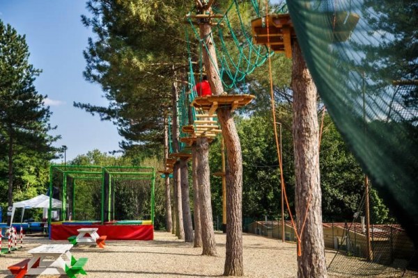 Wyposażenie i usługi: recepcja, punkt Wi-Fi, dwie restauracje/pizzerie, restauracja z typową kuchnią toskańską, 3 bary, 2 bary przy basenie, sklep, 5 basenów dla dorosłych i dla dzieci (około 25/4-4/10), kryty basen (około 9/4-4/10), boisko dla dzieci, dyskoteka, świetlica, wellness (sauna, łaźnia turecka), kosmetyczka, lekarz, pralnia, boisko do piłki nożnej, siatkówka plażowa, koszykówka, mini golf, tenis stołowy, siłownia, programy animacyjne i miniclub. Centrum linowe, korty tenisowe, wypożyczalnia rowerów i skuterów, jazda konna, wszystko za opłatą.
