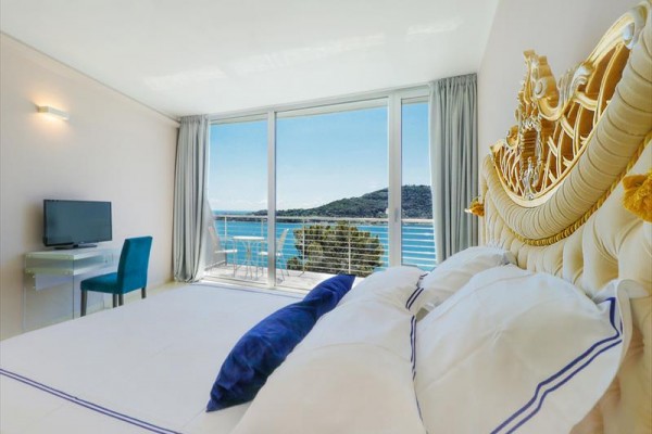 Pokój dwuosobowy typu deluxe z balkonem i widokiem na morze Przestronny i elegancki pokój, dźwiękoszczelny, o powierzchni około 25 metrów kwadratowych, z prysznicem, minibarem, sejfem, suszarką do włosów, telewizją satelitarną, telefonem z bezpośrednim wyjściem na miasto, Wi-Fi, klimatyzacją, balkonem z widokiem na morze.