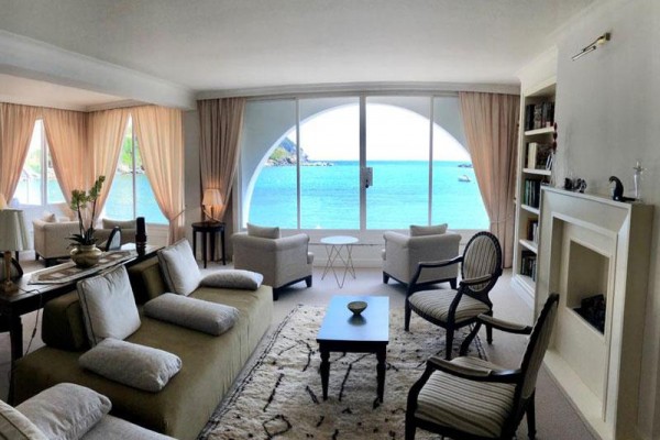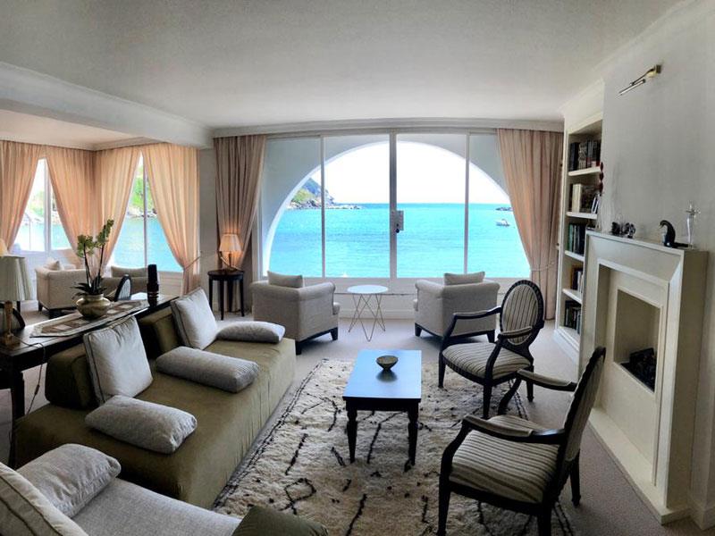APARTAMENT Z WIDOKIEM NA MORZE Pokój o powierzchni około 46 metrów kwadratowych, elegancko umeblowany, z widokiem na zatokę Baia del Silenzio, wyposażony w salon, dwie łazienki, łóżko king-size, garderobę, szlafroki, wannę z hydromasażem i telewizję SKY. Oddzielny salon.